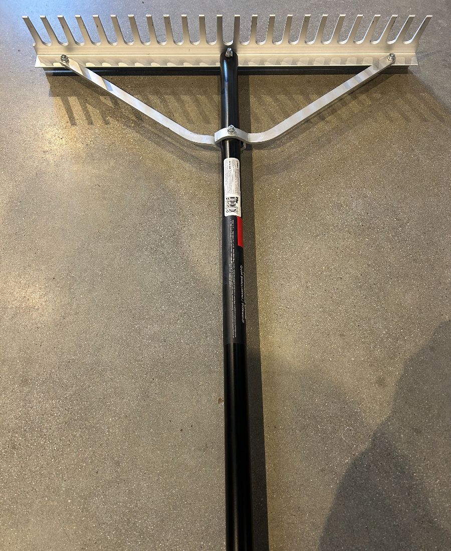 This 24 inch aluminum landscape rake is lightweight yet strong, making it easy to handle for extended use. It is ideal for leveling soil, spreading gravel, and grading surfaces. The wide rake head increases coverage and improves efficiency. Aluminum construction resists rust and corrosion. This rake is suitable for both residential and professional landscaping projects.